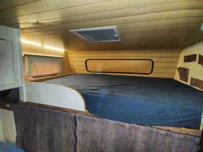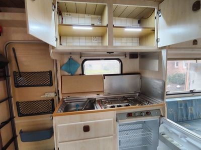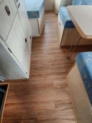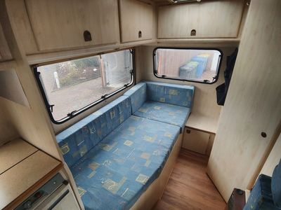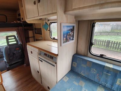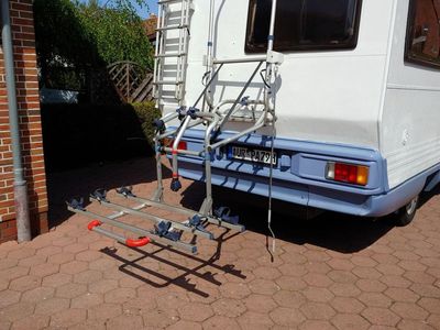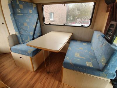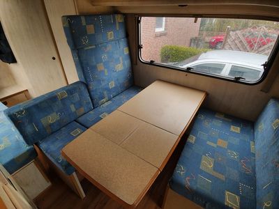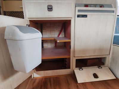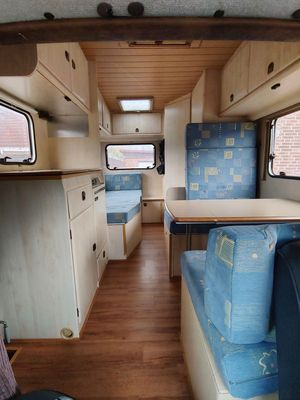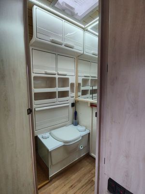 Ausstattung außen • Wohnmobil auf Fiat Ducato 280 mit Dethleffs Globetrotter-Aufbau • Verkleidung der besseren Art (abgerundet, Einstiegstrittbretter) • Aufbau selbst lackiert (alpinweiß, jeansblau) • zweigeteilte Einstiegstür (ideal für Hundebesitzer) • Markise "Omnistore 3000" • Heckklappe für Tisch, Stühle, Schlauch, Kabel, etc. • klappbare Heck-Dachleiter, Dach begehbar • Dachreling mit Pkw-Abständen, Dachkoffer montierbar • 100W-Solarpanel • 3er Fahrradträger mit Absenkfunktion (Kurbel) (20cm Abstand, Pedelec-geeignet) Ausstattung Fahrerkabine • 5-Gang-Lenkradschaltung, Servolenkung, Tempomat, Voltmeter, diverse 12V Anschlüsse • Sitze ersetzt (neueres Baujahr, sehr straff, nicht durchgesessen) • Beifahrersitz um 360° drehbar • Monitor für Heckkameras (1 oben als Rückspiegel, 1 im Kennzeichenhalter) • Radio mit CD, MP3 (SD, USB) und BlueTooth Freisprecheinrichtung Ausstattung innen • 4er Mittelsitzgruppe, davon 1 Sitzplatz mit 3-Punkt-Gurt, = 1 Schlafplatz (100cm x 180cm) oder 2 Kinder • Längs-Festbett im Heckbereich = 1 Schlafplatz (85cm x 175cm) • Alkoven = 2 Schlafplätze (140cm) • Bodenplatte innen mit 3cm Styrodur und Klickvenyl ausgelegt • alle Polster (Schaumgummi und Stoff) sind 2018 erneuert worden, im Alkoven eine gute Matratze • Elektrik 2014 auf CTek-Basis umgerüstet (25A Ladegerät, Verteiler, Balancer, 100W-Solarpanel) • 2 x 11Kg Gasflaschen möglich (derzeit eine Flasche und 25 Liter Reservekanister) • Frischwassertank ca. 80 Liter (unter Heckbett) • Abwassertank ca. 80 Liter (Unterflur) • Standheizung "Trumatic 3000", Bad und Alkoven mit beheizt • Warmwasser-Boiler (Gas) • Kühlschrank (manuelle Umschaltung 220V, 12V, Gas) • Edelstahl Spüle, große Besteckschublade, 3er Flammenkocher • 4 Dachfenster mit Fliegengitter und Verdunkelung • alle Fenster mit Verdunkelungsrollos, die seitlichen (außer Küche) mit Fliegengitter • Innenbeleuchtung auf LED-Stripes umgerüstet • WC mit Plastik-Staufächern und Klapp-Waschbecken (Dusche deaktiviert) • alle oberen Schrankfächer auf 40cm Tiefe verbreitert • großer Kleiderschrank mit Schuhfach • riesiges Staufach unter dem Heckbett (130x80x40cm) • Ablagefächer an und über der Einstiegstür • Nichtraucher |